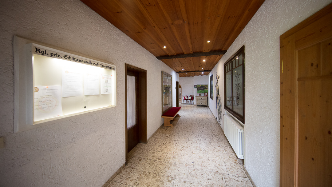Hauptsächlich genutzt von den Mitgliedern der Schützengesellschaft werden die beiden Schützenstuben im Keller an regelmäßigen und variablen Schießterminen, Treffen und Veranstaltungen. Anschließend befinden sich die Schießstände für Luftpistole, Luftgewehr, Kleinkaliber- und Großkaliber-Kurz- und Langwaffen.