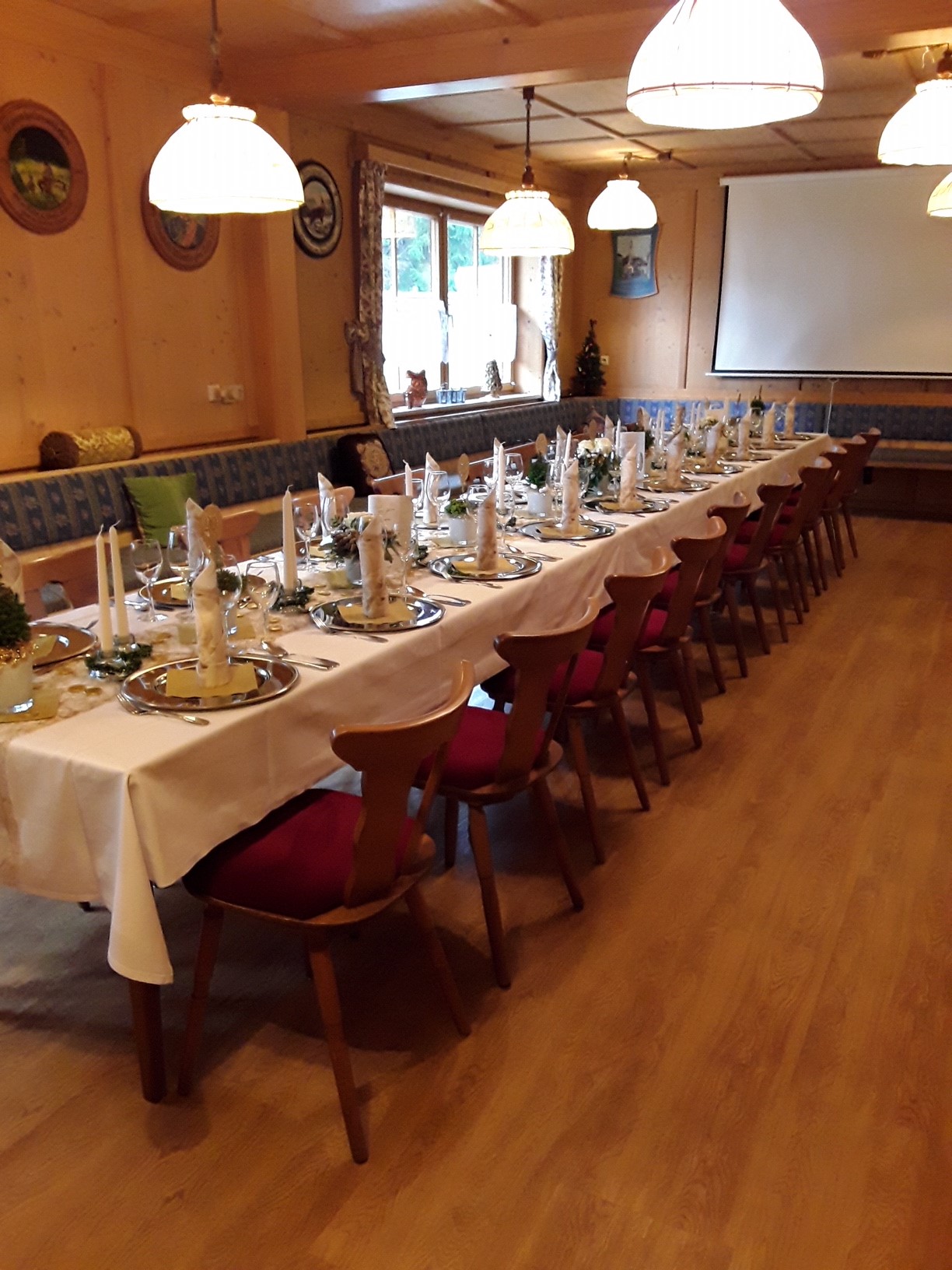 Ideal geeigent für kleinere Feiern und Events bis 50 Personen ist unsere gemütliche holzgetäfelte König-Ludwig-Stube mit 46qm.