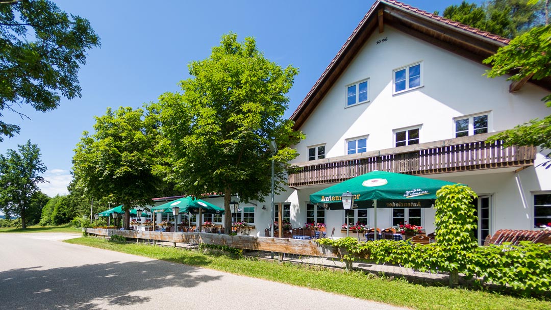 Der Landgasthof liegt ohne direkte Nachbarn am Waldrand oberhalb der Ortschaft Nassenbeuren in der Nähe von Mindelheim im Unterallgäu.