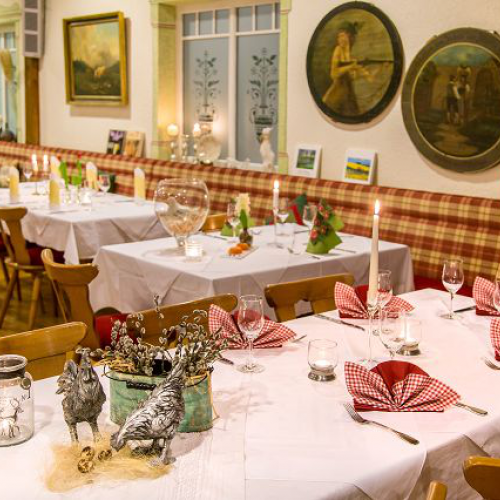 Unsere helle gemütliche Gaststube mit ihren vielen Details gibt Ihnen einen einzigartigen Rahmen für kleine oder große Feiern und Veranstaltungen. Wir bieten das einladende Ambiente eines gemütlichen Landgasthofes, welches über viele Jahre mit sehr viel Engagement aufgebaut und gepflegt wurde und von den Gästen sehr geschätzt wird.